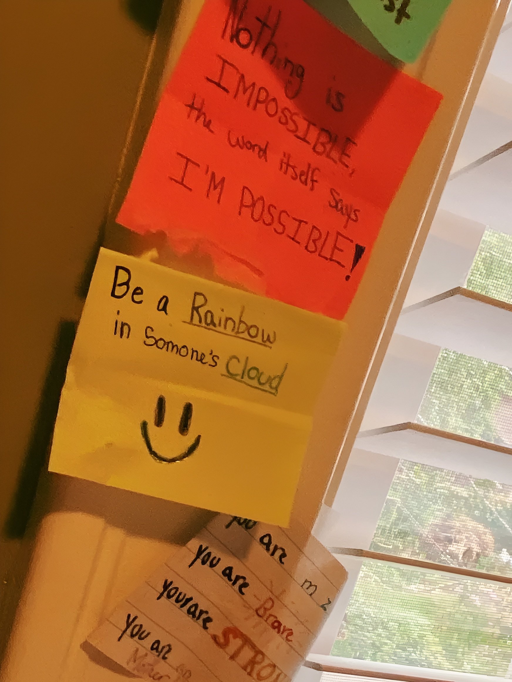 Give yourself encouragement: A quick pep talk is a perfect way to motivate yourself. We suggest writing out some of your favorite positive thoughts and leaving them in your purse, wallet, car, bathroom, kitchen, desk drawer, etc. Reference Lisa & her daughter’s office for some inspiration!