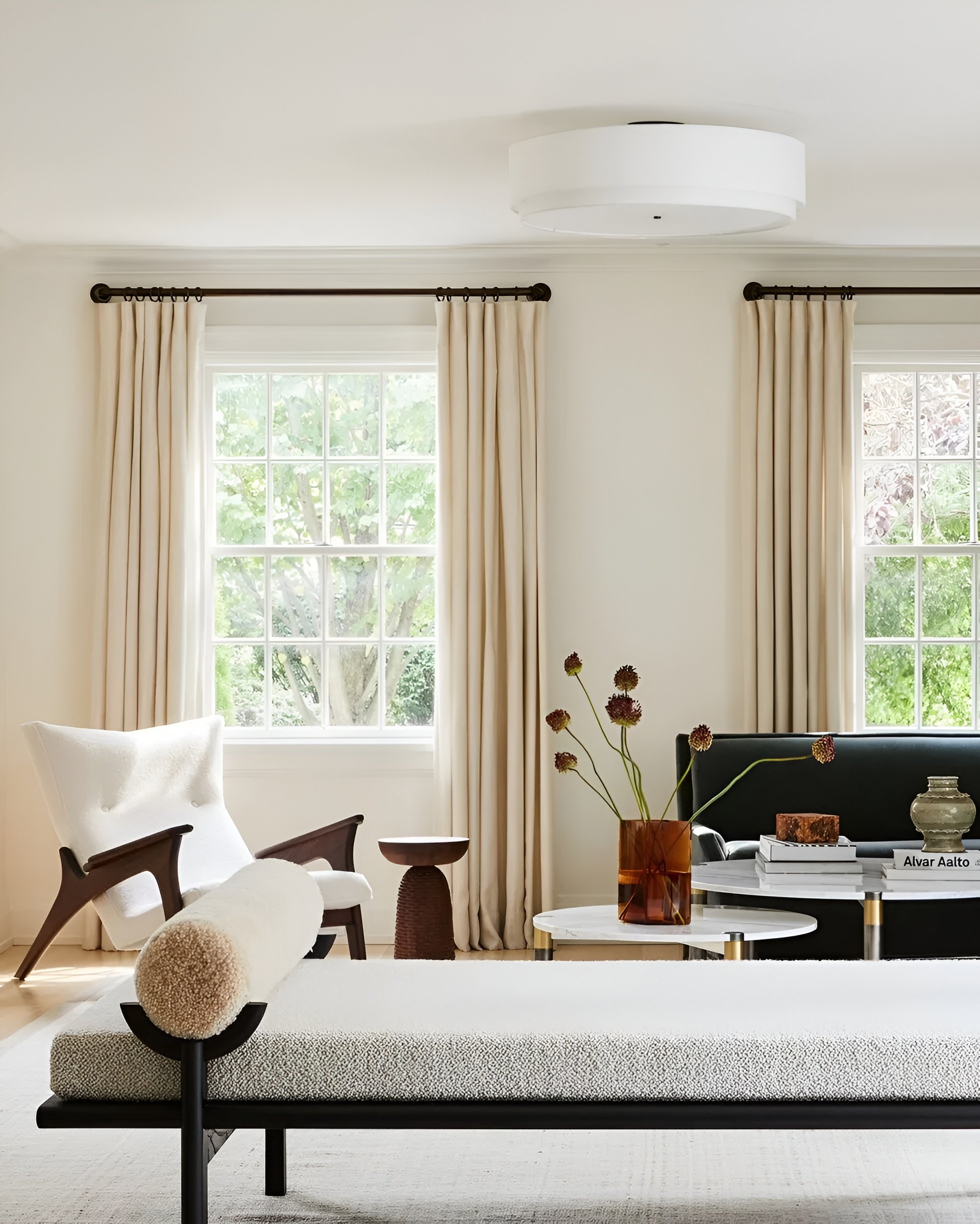 Contemporary takes on the fainting couch feature fewer intricacies and usually just have a single back with two rolled arms or no arms at all so you can stretch your legs and relax as well as recline a tiny bit while being upright enough to stay awake. They’re a lovely accent in an empty corner as well as a good way to break up a large space with multiple sitting areas as they’re not as bulky as larger sofas thanks to a lower profile.