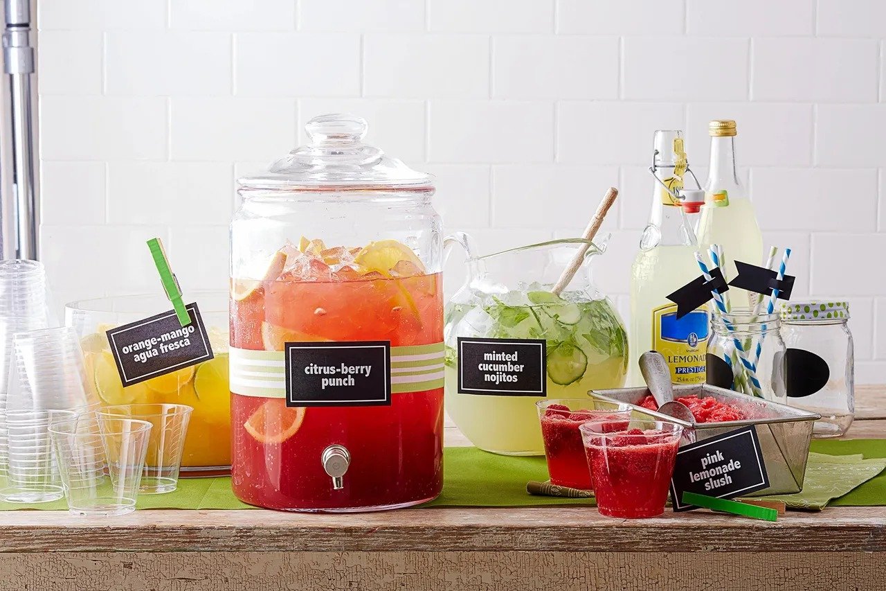 Most outdoor events wouldn’t be complete without a well-stocked drink station! When planning, make sure to set up your beverage station away from the food area to ease foot traffic during your party. Make it easy to serve a large number of people by using large drink dispensers filled with fruit-infused ice water, flavored vodkas, fresh squeezed lemonade or other summer time drink favorites! It’s also wise to stock a few beverage tubs or coolers with beer and sodas as a quick and easy way to provide your guests a variety of options.