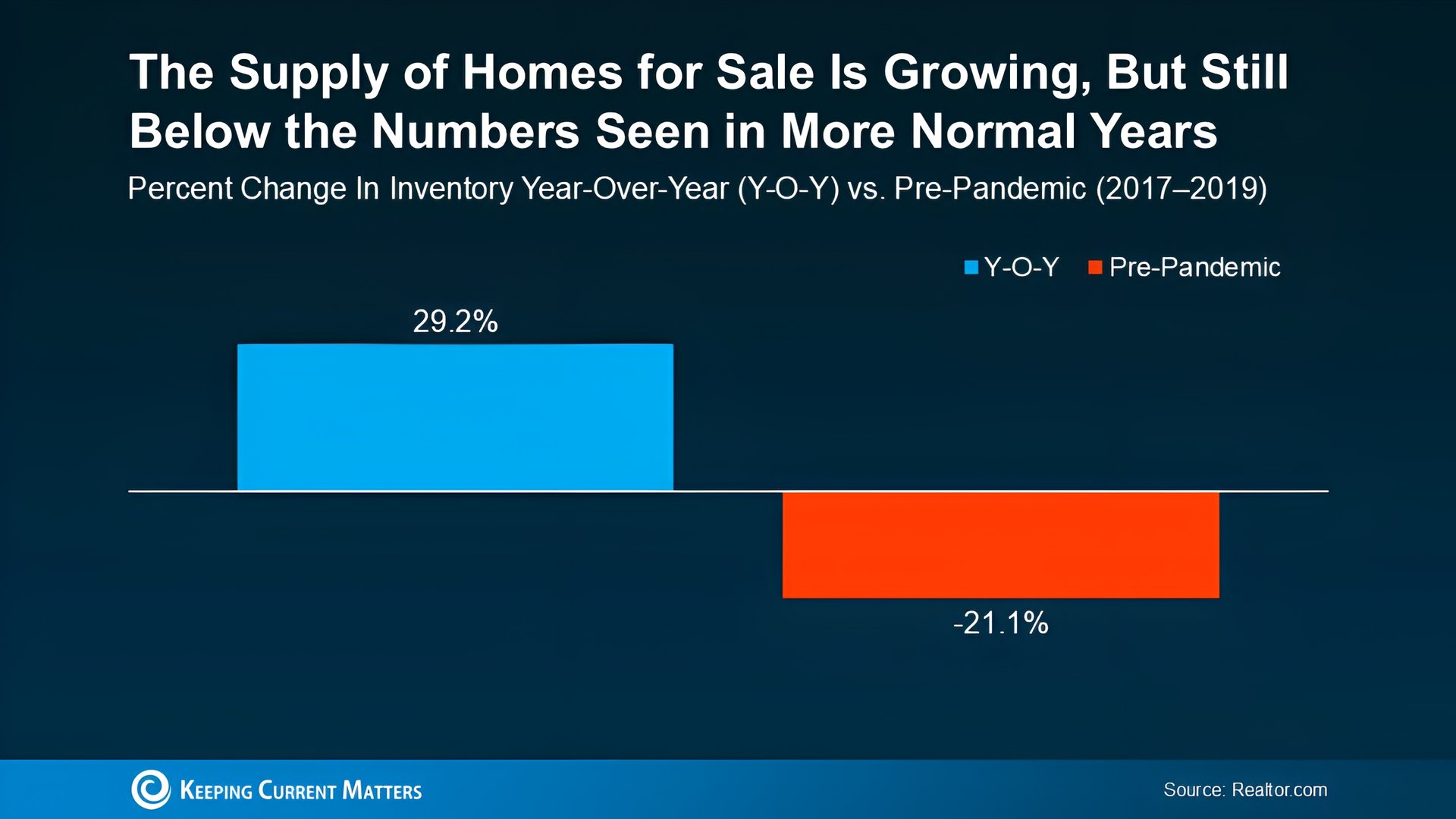 But finding a home in today’s market isn’t as challenging. That’s because the number of homes for sale is growing, giving you more options to choose from. Data from Realtor.com shows just how much inventory has increased – it’s up almost 30% year-over-year (see graph below):