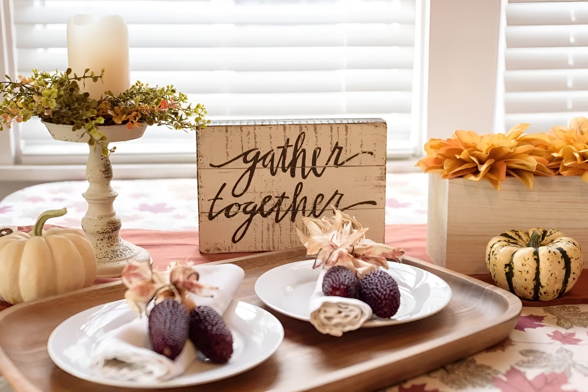 • Signs with sayings such as “gather”, “thankful”, and “grateful”